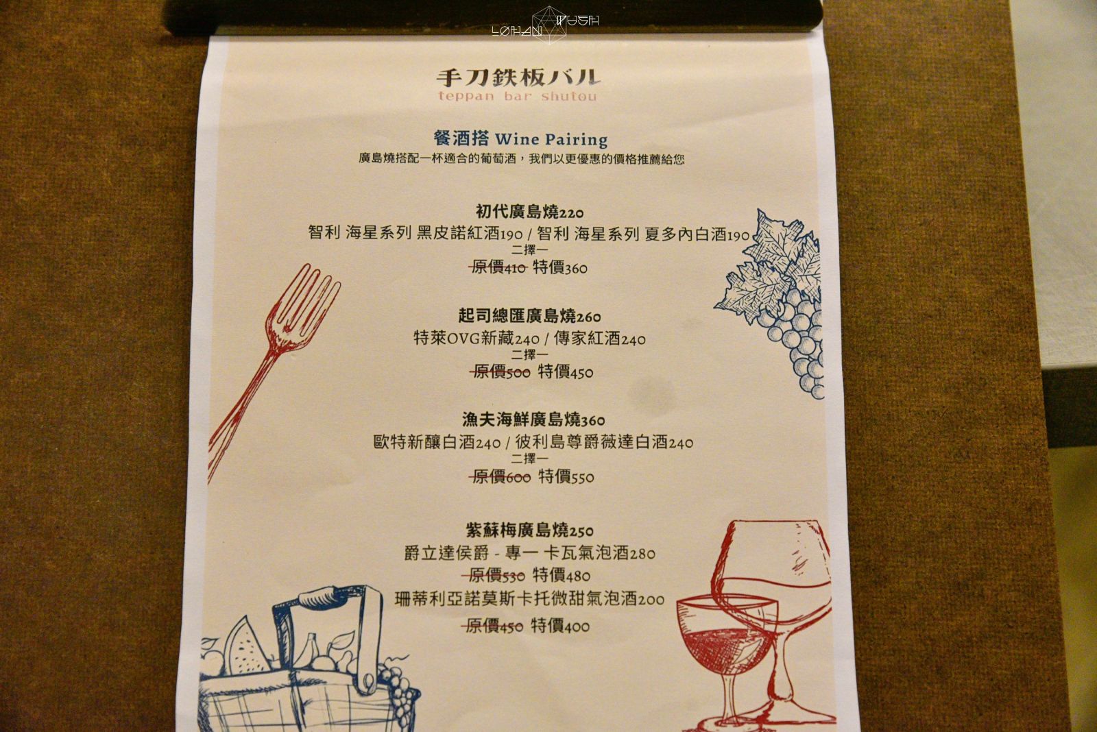 除了餐點之外,日式居酒屋怎麼可能少了酒類,這裡有提供啤酒及西式餐酒,甚至還有餐酒菜單,建議不同的廣島燒可以搭配不同的餐酒,整體價格還有特價。