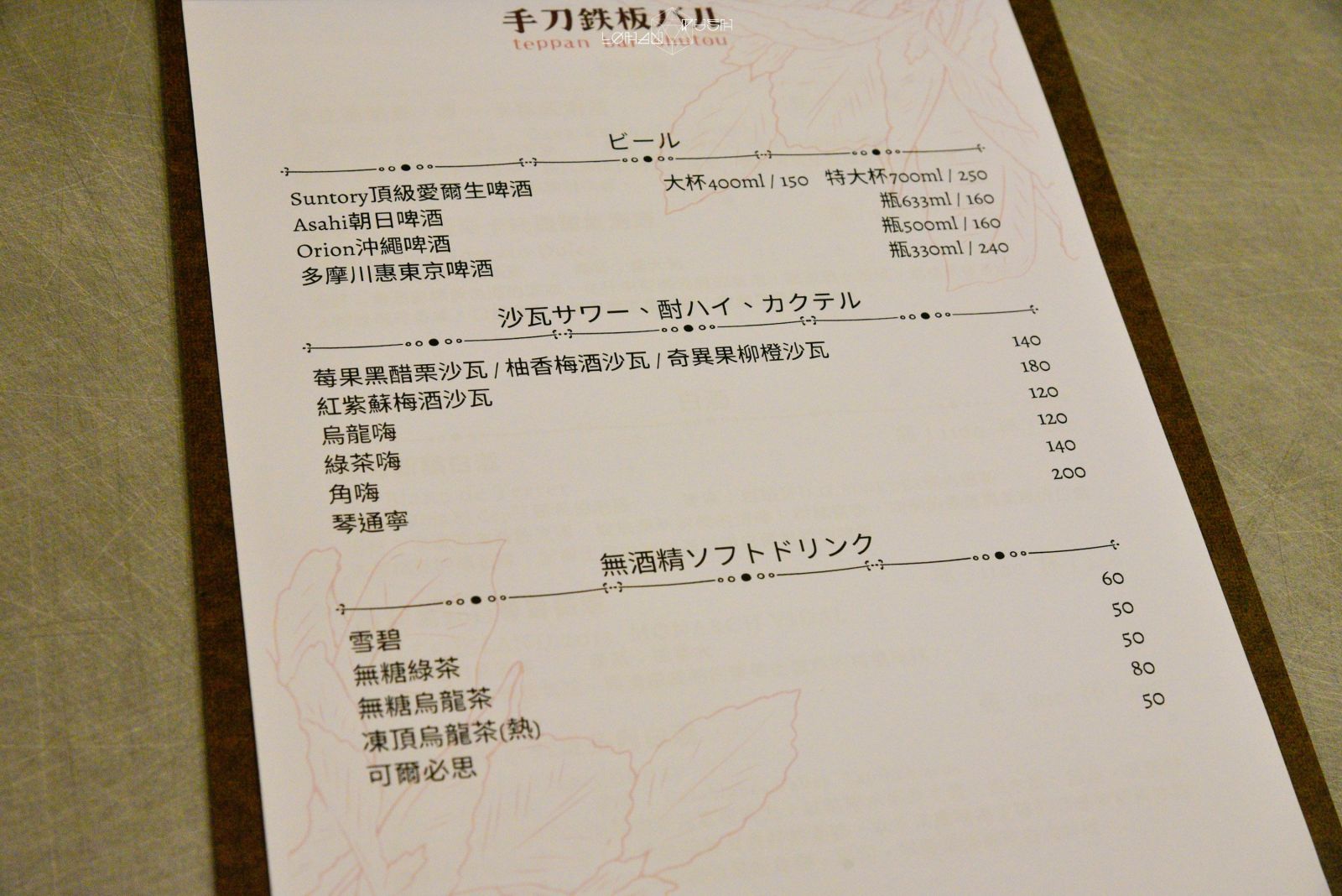滑IG發現這間剛開幕的手刀鉄板バル,覺得名字特別,查了一下原來是手刀串燒的二店!看菜單後發現除了廣島燒外,也有日式炒麵、牛舌及各類下酒菜,餐廳設計風格走日系簡約風,室內空間不大但佈置溫馨,是間適合下班後跟朋友喝酒聊天吃宵夜的小店。