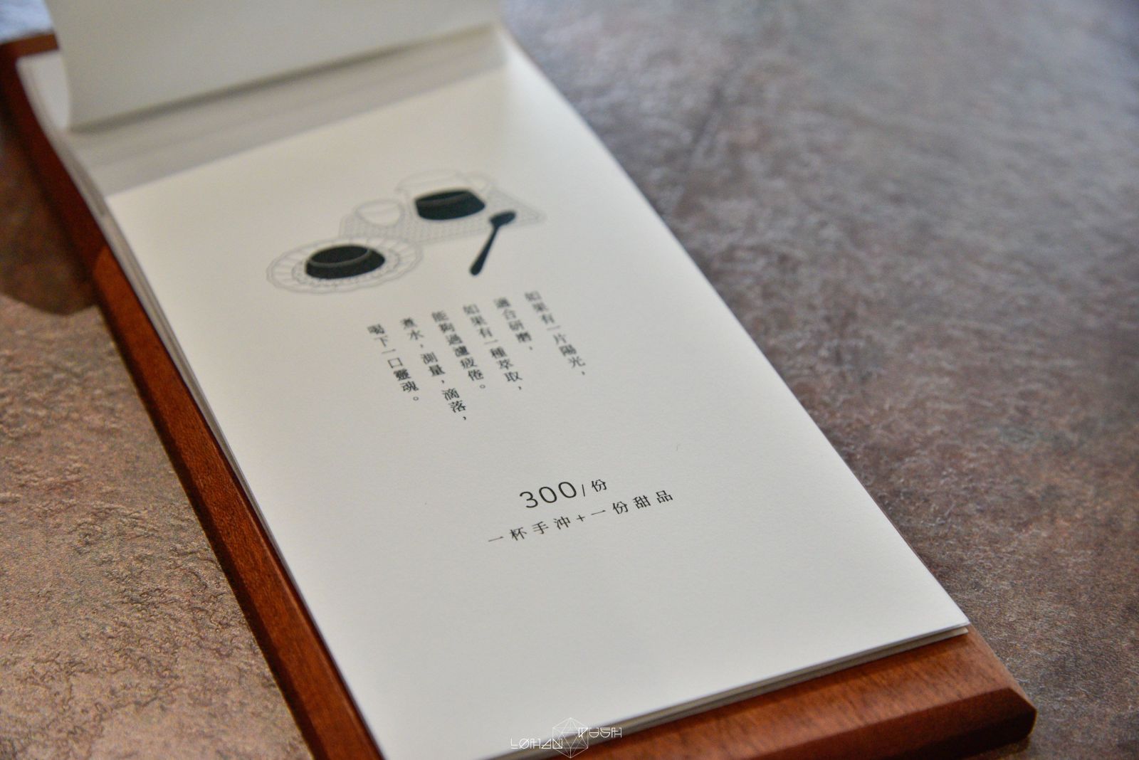 吧台的供餐方式,是一壺現煮咖啡加上一份布丁甜點。選擇咖啡豆後,倚坐在高腳椅欣賞咖啡師的沖煮演出,從磨豆到沖煮的每一個步驟,就像是場藝術表演,同時還能沉浸在撲鼻的咖啡香中。咖啡的擺盤、器具都很精緻,從這邊就可以感受到店家的用心與細心。