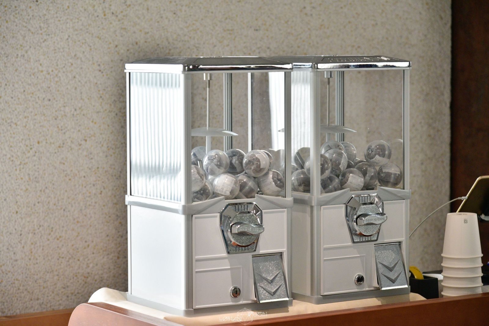 手沖咖啡的體驗從「扭蛋機」開始。兩台扭蛋機內放了6種不同口味的咖啡豆,左邊是屬於淡雅,右邊相對濃郁,可依照自己當天的心情來抽選豆子,體驗隨機挑選咖啡的樂趣。當天抽到清晨五點,咖啡袋上寫著豆子的調性,風味是偏果香相對清新。
