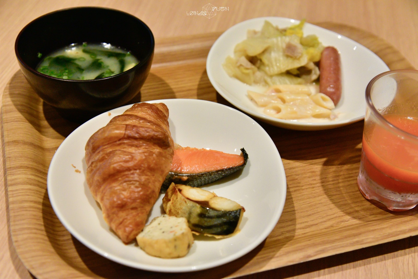 早餐的選項雖然沒有晚餐那麼多,但其實也非常足夠,日式、西式都有,除了經典的日式白米飯、鮭魚、蔬菜等熟食外,西式部分的可頌也很好吃,還有現做鬆餅,另外也有水果、現打果汁,吃一輪下來覺得很飽足。